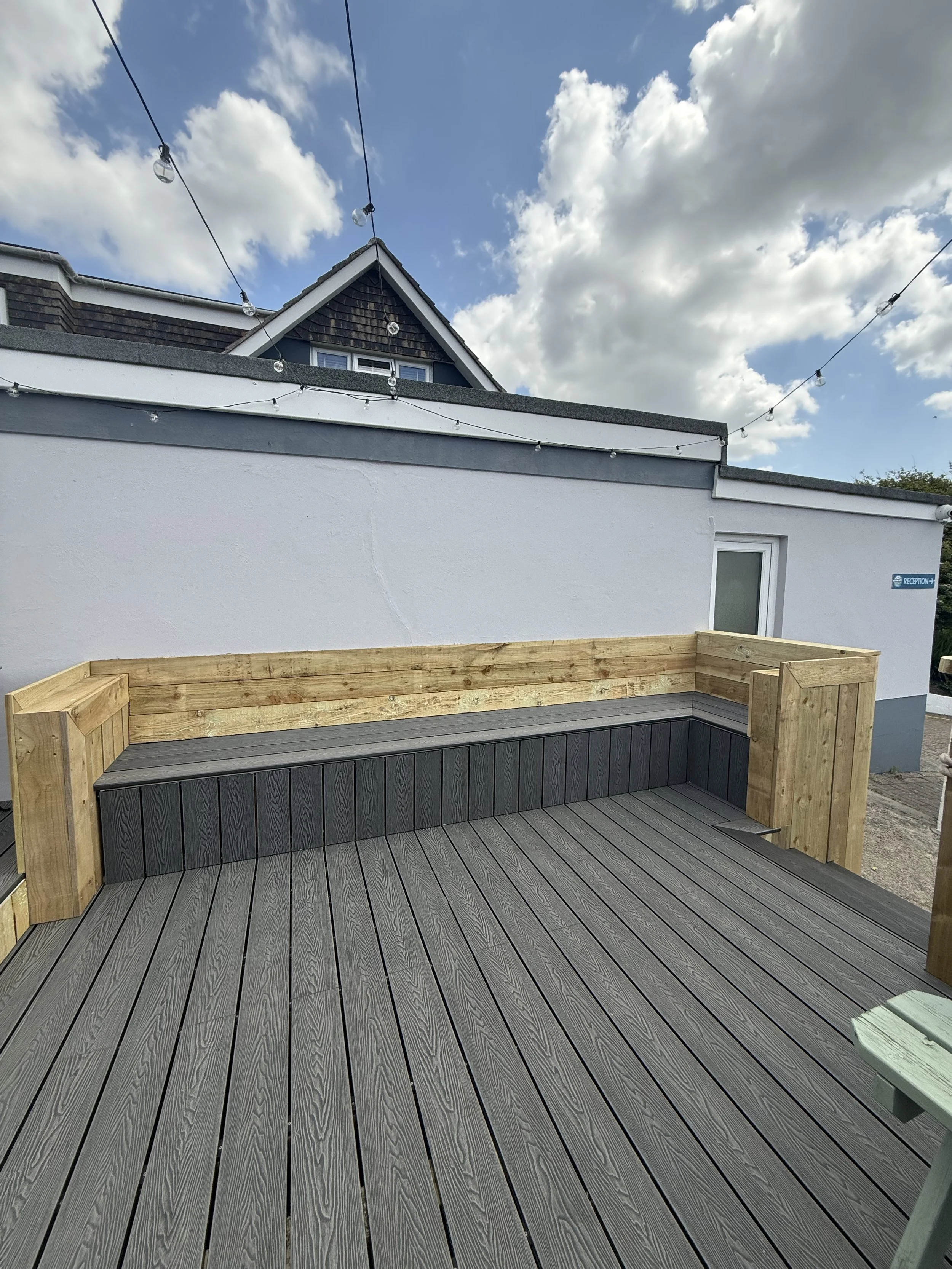 The Fern DeckingWe were hired to create a brand new decking for the new bar, The Fern, in Perranporth, just in time for summer!